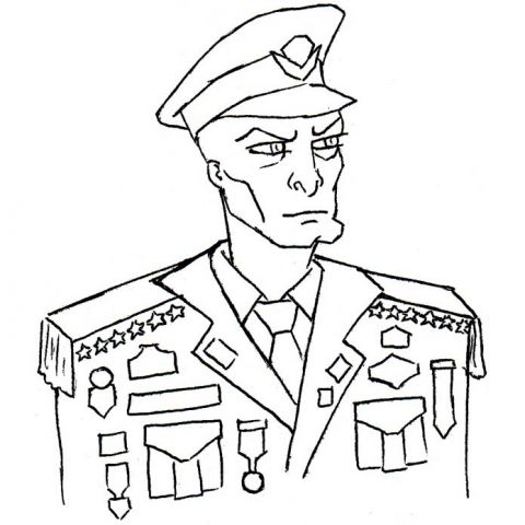 General Gore Andriol through cunning, bribery and loyalty to his president became General of Mumba Zola's Army. He's loud, bossy, and emotionally fragile; capable of violence and responsible for many innocent deaths. The general is never seen without his military uniform which conceals his only childhood cuddly toy, Buster, a stuffed and now frayed baby *rabbityle.